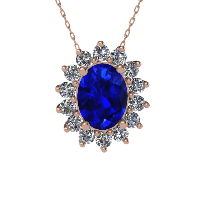 Lab safir ve swarovski 18 ayar rose altın kolye (40 cm rose altın rolo zincir)