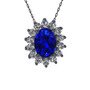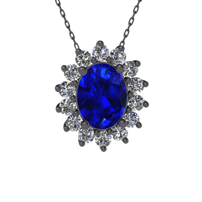 Lab safir ve swarovski 925 ayar siyah rodyum kaplama gümüş kolye (40 cm gümüş rolo zincir)