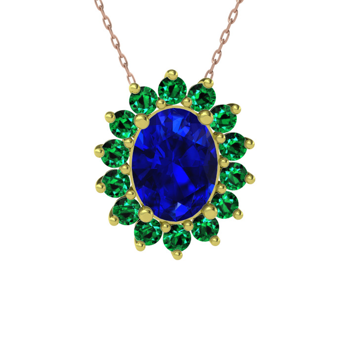 Lab safir ve yeşil kuvars 925 ayar altın kaplama gümüş kolye (40 cm rose altın rolo zincir)