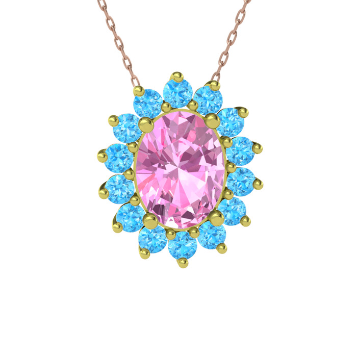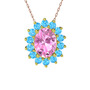 Pembe kuvars ve akuamarin 18 ayar altın kolye (40 cm gümüş rolo zincir)