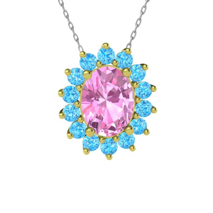 Pembe kuvars ve akuamarin 925 ayar altın kaplama gümüş kolye (40 cm beyaz altın rolo zincir)