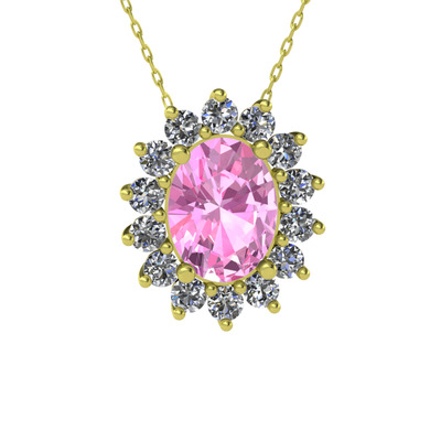 Pembe kuvars ve beyaz zirkon 925 ayar altın kaplama gümüş kolye (40 cm gümüş rolo zincir)