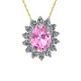 Pembe kuvars ve beyaz zirkon 925 ayar gümüş kolye (40 cm altın rolo zincir)