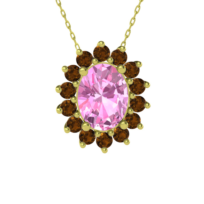 Pembe kuvars ve dumanlı kuvars 14 ayar altın kolye (40 cm altın rolo zincir)