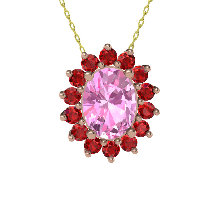 Pembe kuvars ve garnet 8 ayar rose altın kolye (40 cm altın rolo zincir)