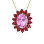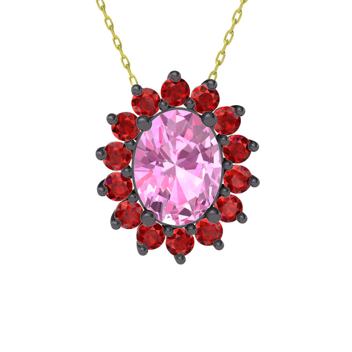 Pembe kuvars ve garnet 925 ayar siyah rodyum kaplama gümüş kolye (40 cm altın rolo zincir)
