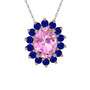 Pembe kuvars ve lab safir 18 ayar rose altın kolye (40 cm beyaz altın rolo zincir)