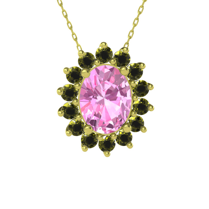 Pembe kuvars ve peridot 14 ayar altın kolye (40 cm altın rolo zincir)