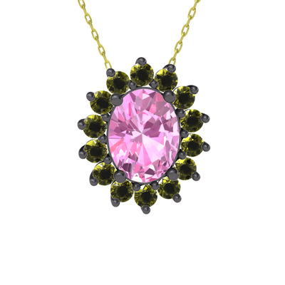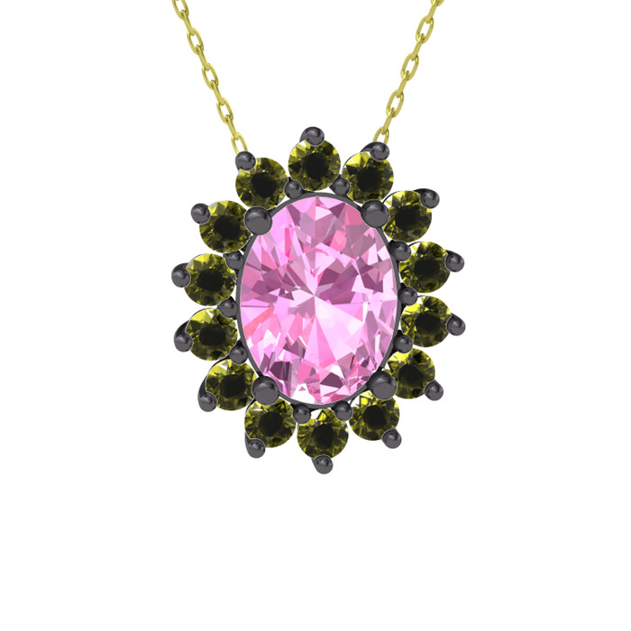 Pembe kuvars ve peridot 925 ayar siyah rodyum kaplama gümüş kolye (40 cm altın rolo zincir)