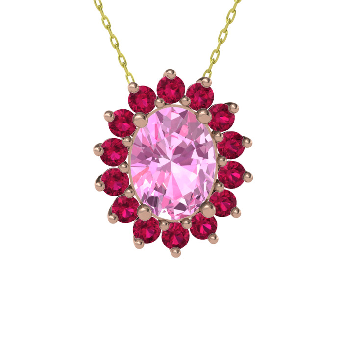 Pembe kuvars ve rodolit garnet 18 ayar rose altın kolye (40 cm altın rolo zincir)