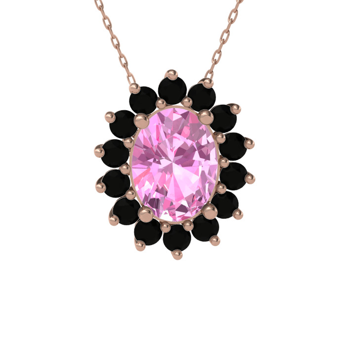 Pembe kuvars ve siyah zirkon 8 ayar rose altın kolye (40 cm gümüş rolo zincir)