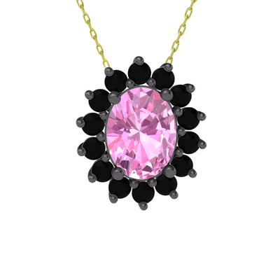 Pembe kuvars ve siyah zirkon 925 ayar siyah rodyum kaplama gümüş kolye (40 cm altın rolo zincir)