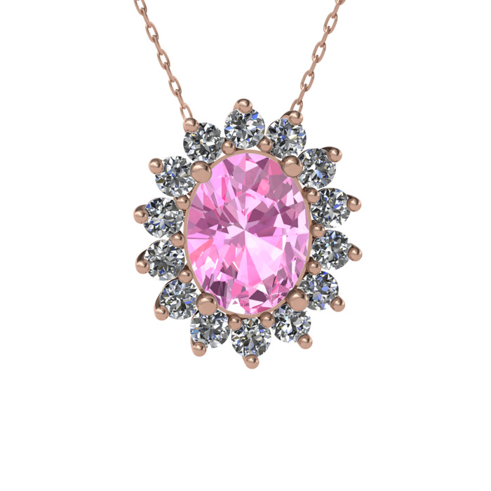 Pembe kuvars ve swarovski 14 ayar rose altın kolye (40 cm gümüş rolo zincir)