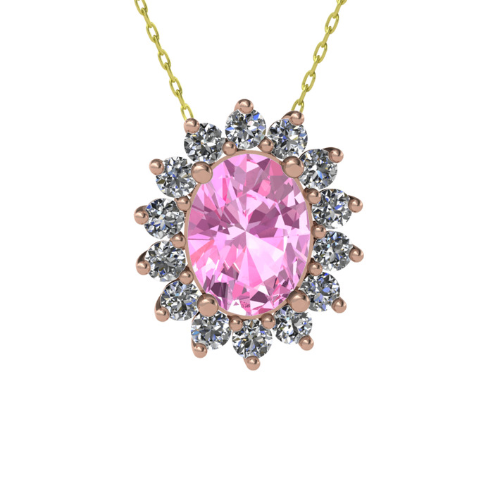 Pembe kuvars ve swarovski 925 ayar rose altın kaplama gümüş kolye (40 cm altın rolo zincir)