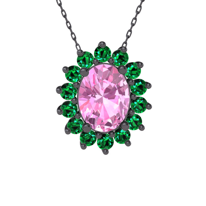 Pembe kuvars ve yeşil kuvars 925 ayar siyah rodyum kaplama gümüş kolye (40 cm gümüş rolo zincir)