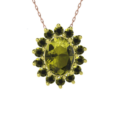 Peridot 8 ayar altın kolye (40 cm rose altın rolo zincir)