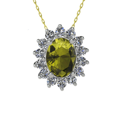 Peridot ve beyaz zirkon 8 ayar beyaz altın kolye (40 cm altın rolo zincir)