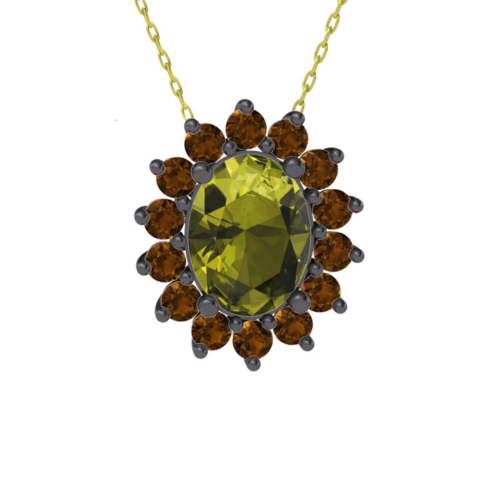 Peridot ve dumanlı kuvars 925 ayar siyah rodyum kaplama gümüş kolye (40 cm altın rolo zincir)