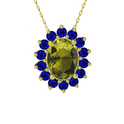 Peridot ve lab safir 8 ayar altın kolye (40 cm altın rolo zincir)
