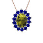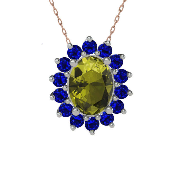 Peridot ve lab safir 8 ayar beyaz altın kolye (40 cm rose altın rolo zincir)