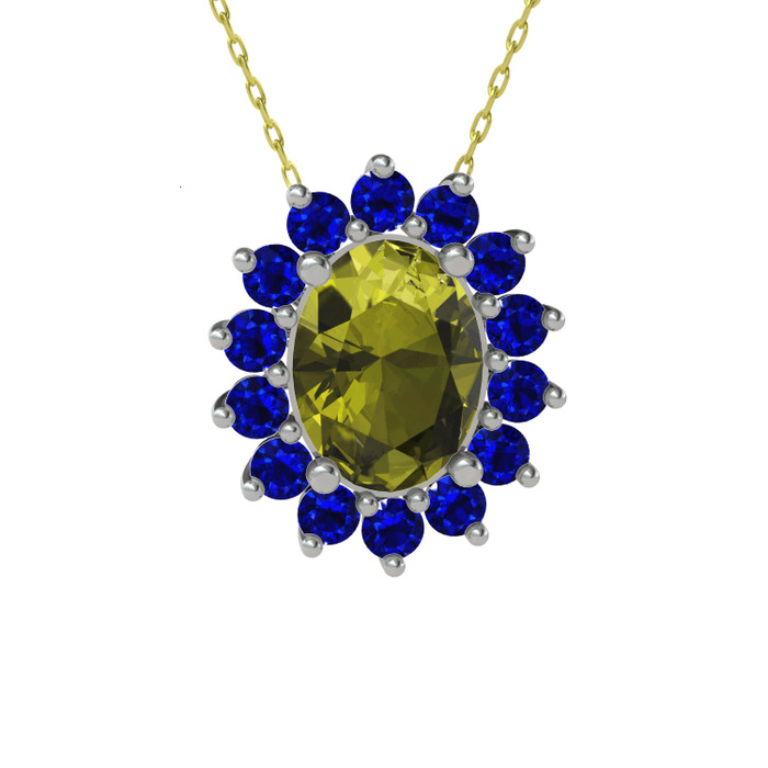 Peridot ve lab safir 925 ayar gümüş kolye (40 cm altın rolo zincir)