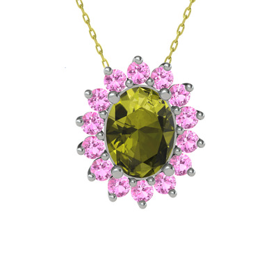 Peridot ve pembe kuvars 925 ayar gümüş kolye (40 cm altın rolo zincir)