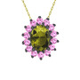 Peridot ve pembe kuvars 925 ayar siyah rodyum kaplama gümüş kolye (40 cm gümüş rolo zincir)
