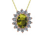 Peridot ve pırlanta 8 ayar rose altın kolye (0.504 karat, 40 cm altın rolo zincir)