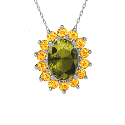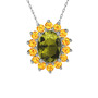 Peridot ve sitrin 14 ayar beyaz altın kolye (40 cm beyaz altın rolo zincir)