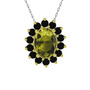 Peridot ve siyah zirkon 18 ayar altın kolye (40 cm beyaz altın rolo zincir)