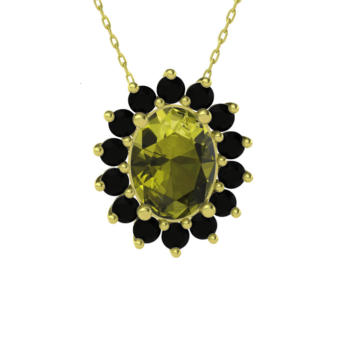 Peridot ve siyah zirkon 8 ayar altın kolye (40 cm gümüş rolo zincir)