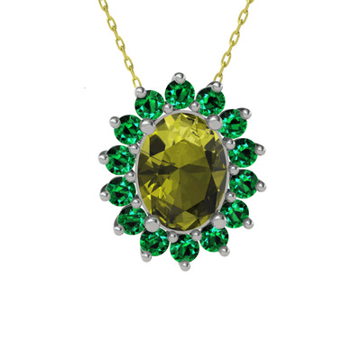 Peridot ve yeşil kuvars 18 ayar beyaz altın kolye (40 cm gümüş rolo zincir)
