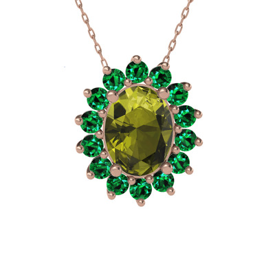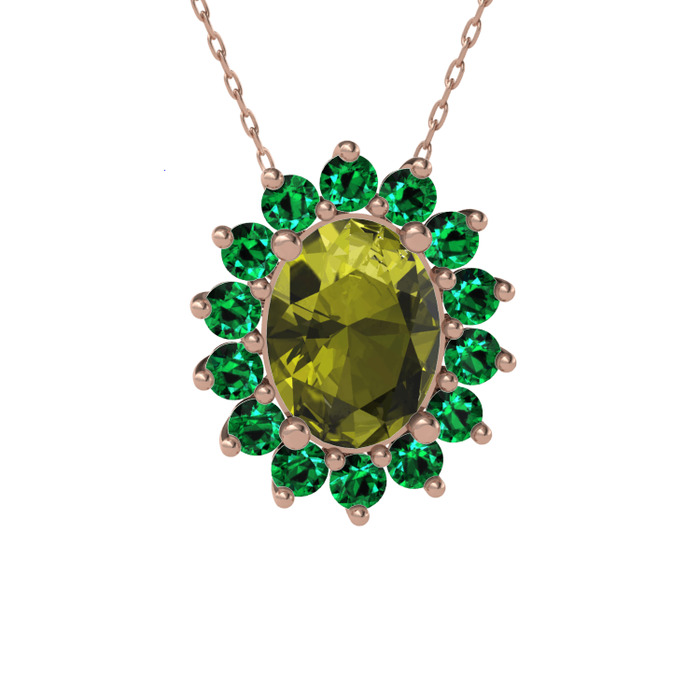 Peridot ve yeşil kuvars 925 ayar rose altın kaplama gümüş kolye (40 cm rose altın rolo zincir)
