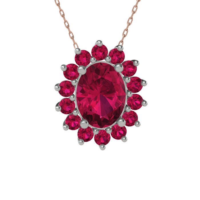 Rodolit garnet 8 ayar beyaz altın kolye (40 cm rose altın rolo zincir)