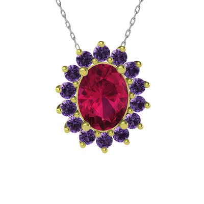 Rodolit garnet ve ametist 8 ayar altın kolye (40 cm gümüş rolo zincir)