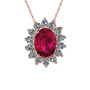 Rodolit garnet ve beyaz zirkon 8 ayar rose altın kolye (40 cm rose altın rolo zincir)