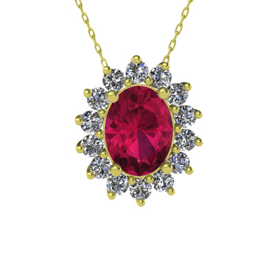 Rodolit garnet ve pırlanta 925 ayar altın kaplama gümüş kolye (0.504 karat, 40 cm gümüş rolo zincir)
