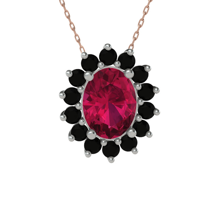Rodolit garnet ve siyah zirkon 18 ayar beyaz altın kolye (40 cm gümüş rolo zincir)