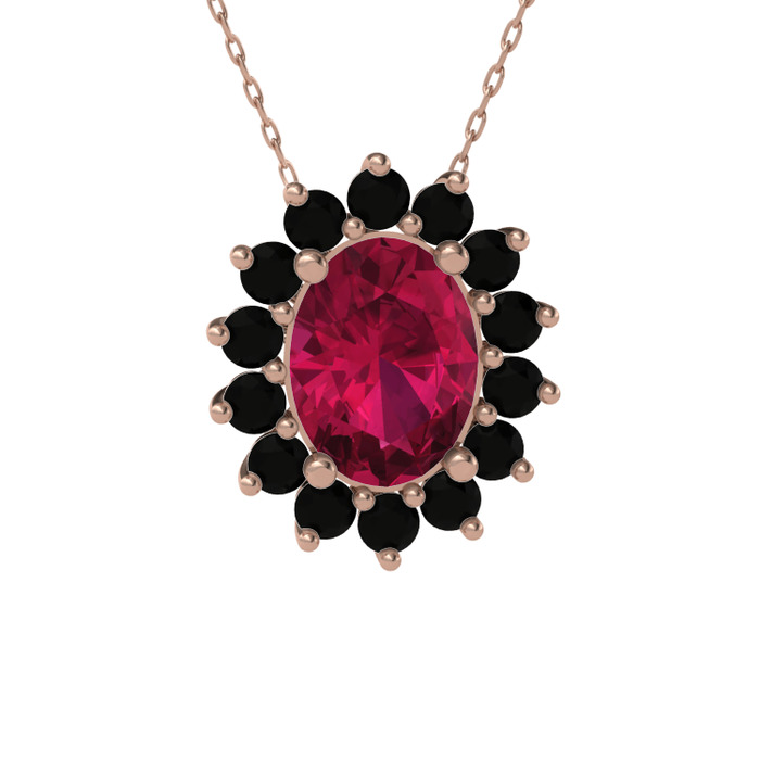Rodolit garnet ve siyah zirkon 8 ayar rose altın kolye (40 cm rose altın rolo zincir)