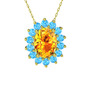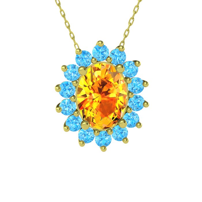 Sitrin ve akuamarin 8 ayar altın kolye (40 cm gümüş rolo zincir)