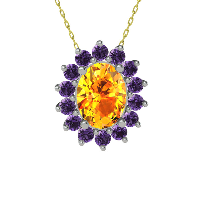 Sitrin ve ametist 14 ayar beyaz altın kolye (40 cm altın rolo zincir)