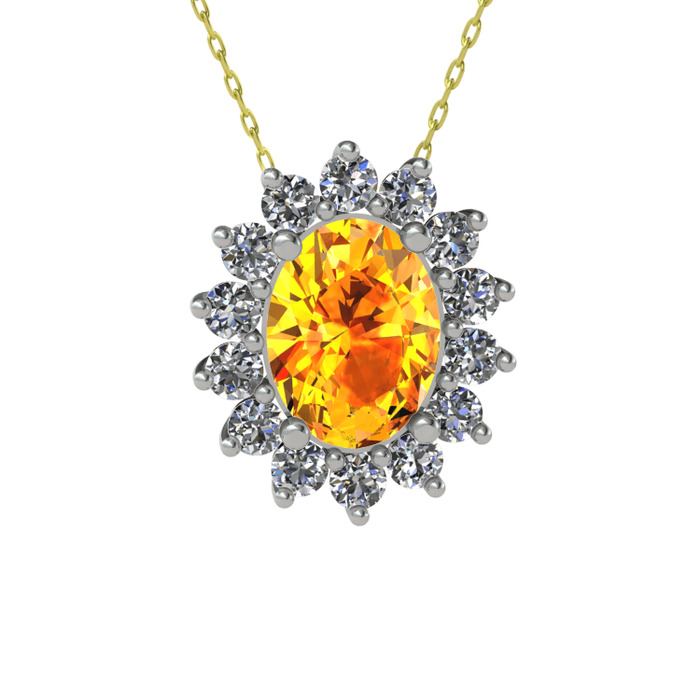 Sitrin ve beyaz zirkon 18 ayar beyaz altın kolye (40 cm altın rolo zincir)