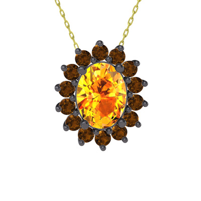 Sitrin ve dumanlı kuvars 925 ayar siyah rodyum kaplama gümüş kolye (40 cm altın rolo zincir)