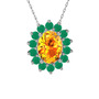 Sitrin ve kök zümrüt 8 ayar beyaz altın kolye (40 cm gümüş rolo zincir)