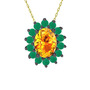 Sitrin ve kök zümrüt 925 ayar siyah rodyum kaplama gümüş kolye (40 cm gümüş rolo zincir)