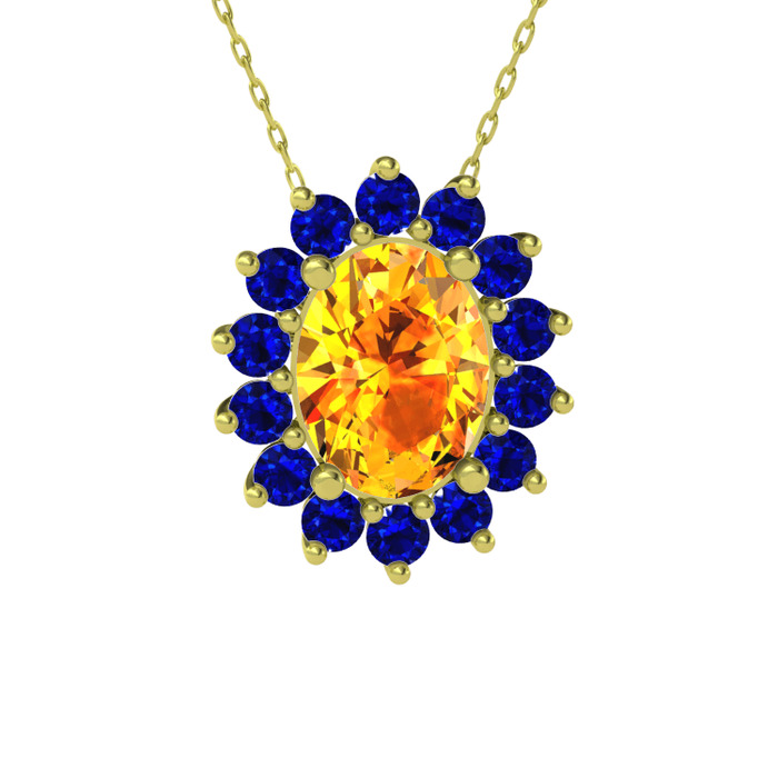 Sitrin ve lab safir 8 ayar altın kolye (40 cm gümüş rolo zincir)
