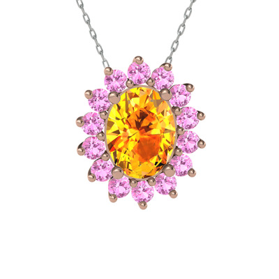 Sitrin ve pembe kuvars 925 ayar rose altın kaplama gümüş kolye (40 cm beyaz altın rolo zincir)