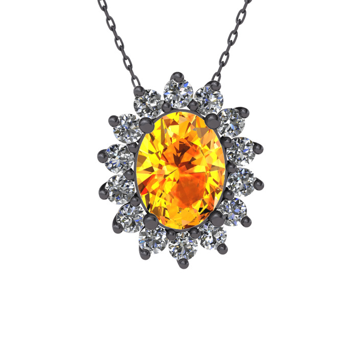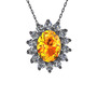 Sitrin ve pırlanta 925 ayar siyah rodyum kaplama gümüş kolye (0.504 karat, 40 cm gümüş rolo zincir)