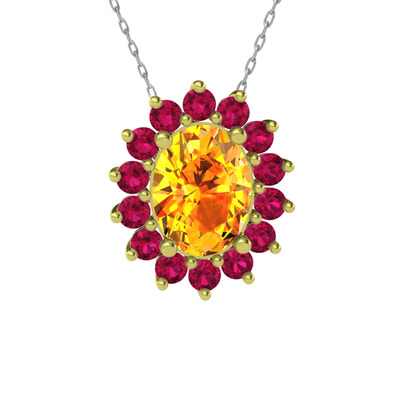 Sitrin ve rodolit garnet 8 ayar altın kolye (40 cm beyaz altın rolo zincir)