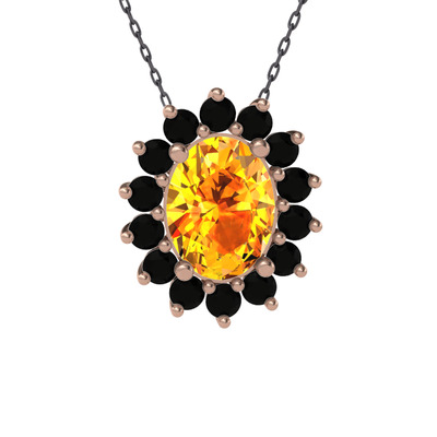 Sitrin ve siyah zirkon 18 ayar rose altın kolye (40 cm gümüş rolo zincir)